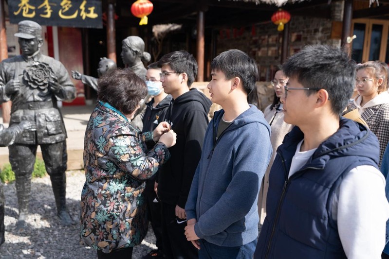 参观完所有红色景点后,党支部按流程开始了第二项活动。首先,由吕亚红副书记、马骏老师、蒋伟老师、罗洁老师、陆雁翎老师为新一批预备党员佩戴党徽。随后进行庄严的党员宣誓仪式,由王恩瑞同志领誓。接着,支部四位预备党员王雨儿、李楠、王恩瑞、段星星同志分享了本次实践学习的收获和体会。同志们在仪式中感受到了胸前的力量与肩上的责任,纷纷表示将始终不忘初心、砥砺前行,为国家发展贡献智慧力量。