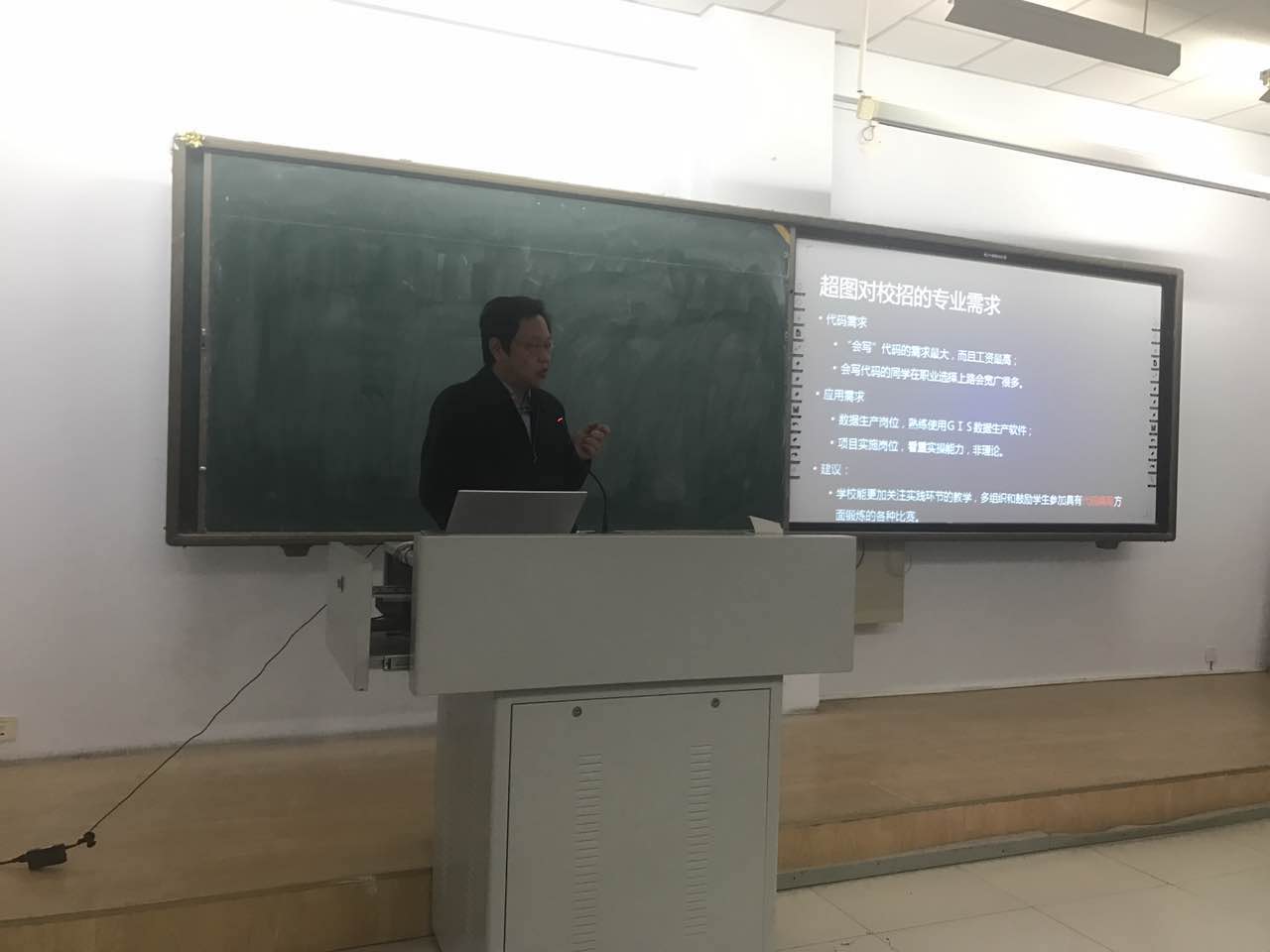 2017年4月26日上午9:00时,北京超图软件股份有限公司代表到beat365官网进行了企业GIS人才需求分析、洞察与远见-大数据时代的GIS软件发展两个专题报告。报告由北京超图呼和浩特分公司销售经理都业军经理主持,beat365官网院长包玉海教授、院长助理银山教授、地理系主任阿拉腾图亚老师及团总支书记胡日查老师以及学院GIS专业近100名同学听取了本次报告。同时,包玉海院长在报告过程中与超图公司代表就部分报告内容进行了交流。