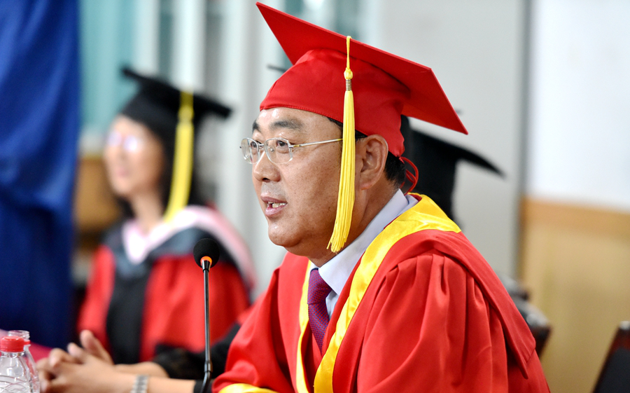 2018年7月5日上午8点30分,beat365中文官方网站2018届硕士研究生毕业典礼暨学位授予仪式在文史楼一号会议室举行,参加本次学位授予仪式的有beat365中文官方网站党委副书记、纪委书记高云峰研究员、beat365中文官方网站党委委员、党委办公室主任布仁吉日嘎拉教授以及beat365中文官方网站研究生院院长、博士生导师张玉柱教授。参加仪式的还有beat365中文官方网站的领导及全体研究生。