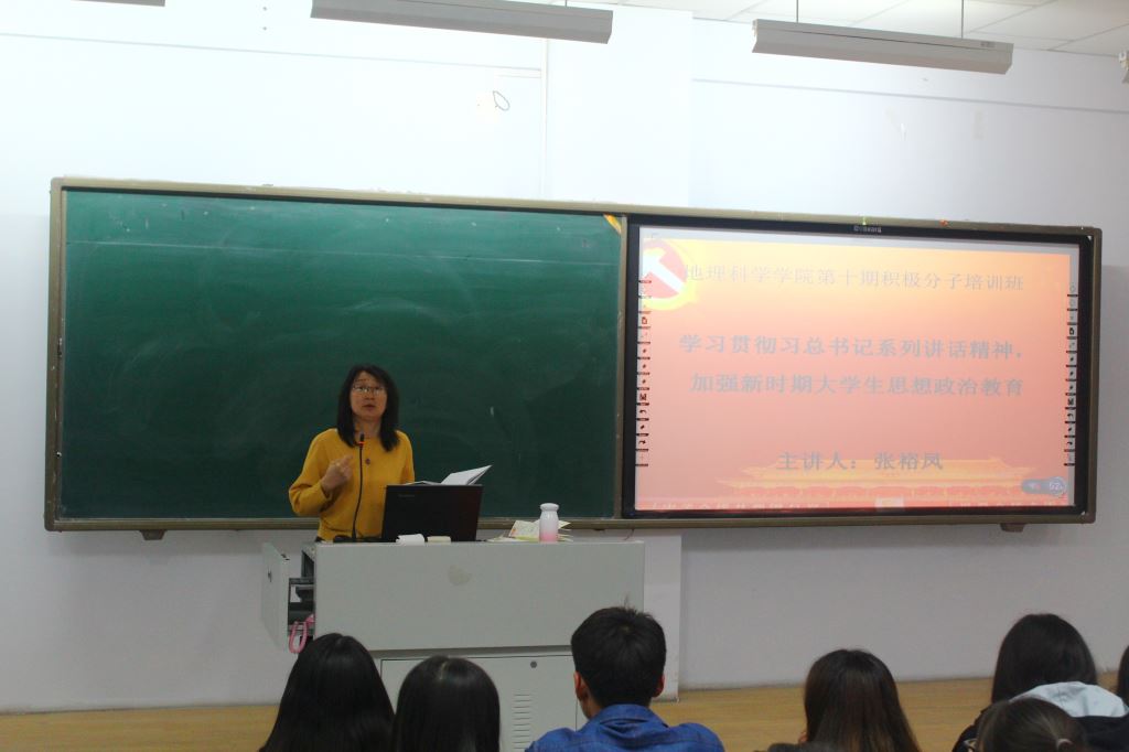 为加强新时期大学生思想政治教育,学习贯彻习总书记系列讲话,beat365中文官方网站学生党支部于2018年5月5日下午6:30在行知楼222教室组织开展了《学习贯彻习总书记系列讲话精神,加强新时期大学生思想政治教育》的主题讲座,主讲人为beat365官网党总支副书记(主持工作)、副院长张裕凤教授。beat365中文官方网站第十期积极分子及预备党员,共147名同学参加了本次党课。