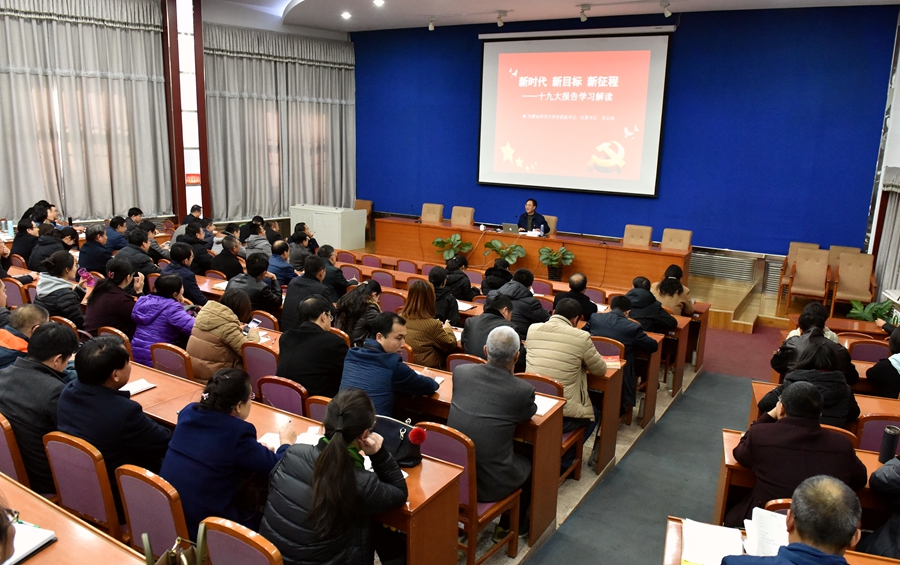 11月15日,校党委副书记、纪委书记高云峰应邀为beat365官网党政机关党总支、教育科学学院党总支、公共管理学院党总支、beat365中文官方网站党总支、后勤机关党总支、盛乐后勤服务集团党总支等六个党总支作了题为《新时代 新目标 新征程——党的十九大报告学习解读》的报告,beat365官网由张裕凤党总支副书记(主持工作)出席了本次报告。