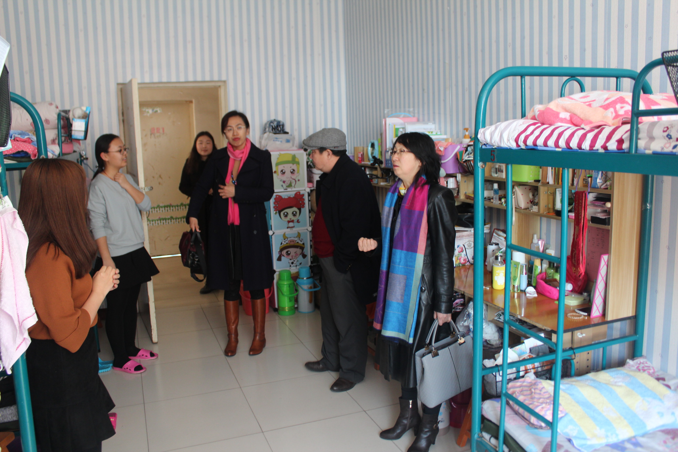 院领导每进一个宿舍都与同学们进行了亲切交流,了解大家的学习生活情况,询问大四同学的考研、工作情况,低年级同学的四六级过级情况,专业课程的学习情况等;叮嘱同学们要遵守校规校纪,保持宿舍内空气新鲜,要保持宿舍卫生,希望同学们能营造良好的生活环境;要求同学们提高安全意识,宿舍没人要锁门,保障宿舍及个人财产安全等;希望同学们从闲适的假期中调整好生活作息和学习心态,督促大家上课准时到课。同学们表示已经准备好迎接新学期的学习,并希望能在学习上有所进步。整个走访过程温馨、融洽、愉快,为今后各项学生工作的开展奠定了良好的基础。