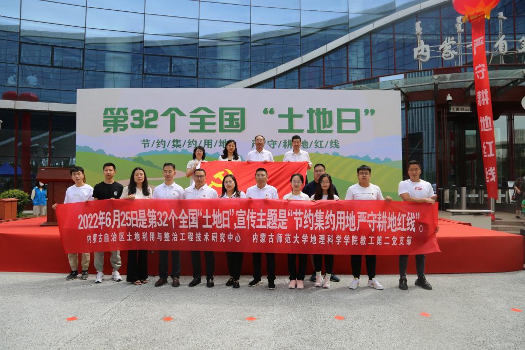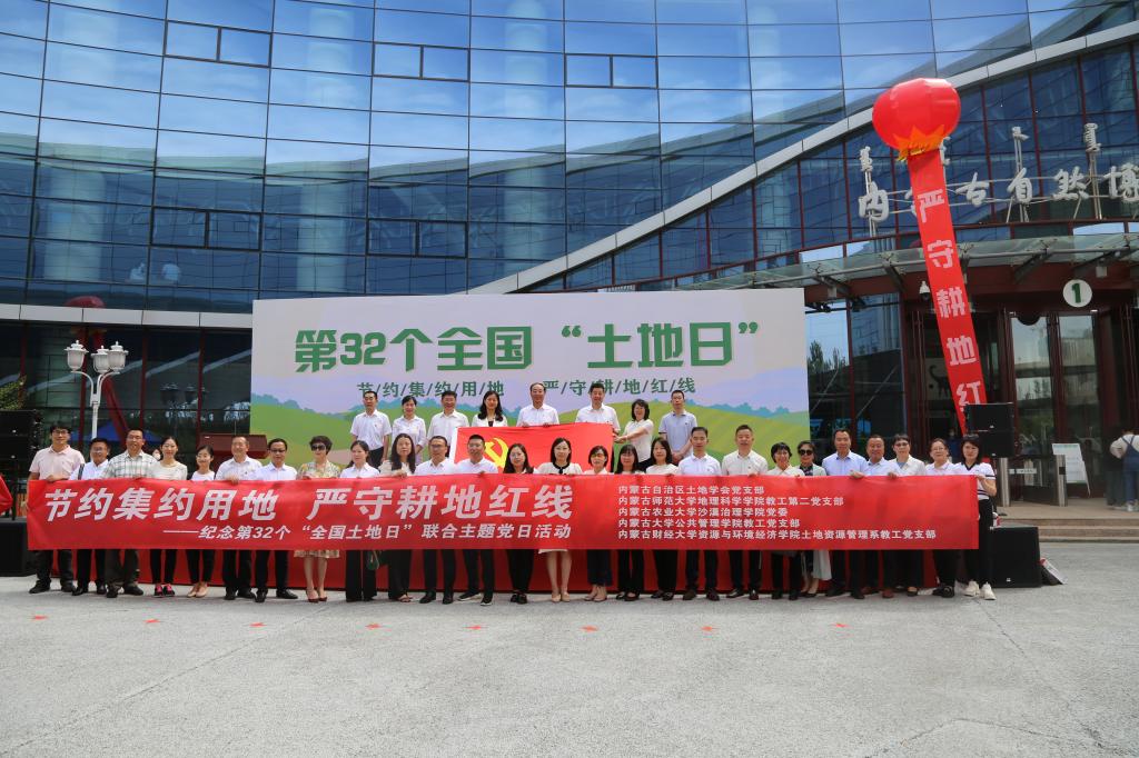2022年6月25日在内蒙古自然博物馆隆重举行本次宣传大会。大会由内蒙古自然资源厅主办,内蒙古土地学会承办。自治区自然资源厅一级巡视员、内蒙古土地学会理事长王富友,自然资源厅党组成员、副厅长郭心语,内蒙古国土空间规划院党委书记、院长杨俊杰以及各高校知名专家学者应邀出席开幕仪式。beat365中文官方网站党委书记、内蒙古土地学会副理事长张裕凤教授参加了开幕仪式。beat365官网教工第二党支部与内蒙古自治区土地学会党支部等联合开展“土地日”主题党日活动。教工第二党支部教师张惜伟、王考、黄晓君、叶志刚和国土资源系主任周瑞平老师、还有研究生同学代表一同参加本次大会。