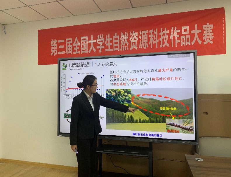 本届大赛分为作品提交及初评、作品甄选及复评以及决赛终评答辩等环节。在初赛阶段,beat365官网“护绿使者”团队在黄晓君老师的指导下,围绕“生态保护背景下无人机不同航高对落叶松毛虫虫害多光谱遥感监测精度的影响分析”,积极开展相关数据分析与实地调研,精心打磨科技成果论文。论文数据翔实,分析深入,方法得当,并顺利经过层层遴选,最终入围决赛(全国仅有50项)。