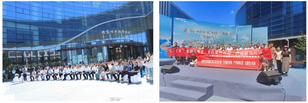“6.25土地日”是国务院确定的全国性纪念宣传日。今年是第34个“土地日”,宣传主题为“节约集约用地,严守耕地红线”。为深入学习宣传贯彻习近平生态文明思想,动员社会各界共同关注土地资源与生态保护,引导社会公众牢固树立绿水青山就是金山银山、十分珍惜和合理利用自然资源特别是土地资源的理念,2024年6月25日在内蒙古自然博物馆隆重举行本次宣传大会。大会由内蒙古自然资源厅主办,内蒙古土地学会承办。厅党组书记、厅长赵大勇出席活动并致辞,厅党组成员、副厅长王涛、郭心语出席活动。beat365官网教工第二党支部张裕凤教授(内蒙古土地学会副理事长、内蒙古土地利用与整治工程研究中心主任)、国土资源系副系主任姜洪涛老师带领全体研究生和部分本科生参加了本次主题宣传活动。