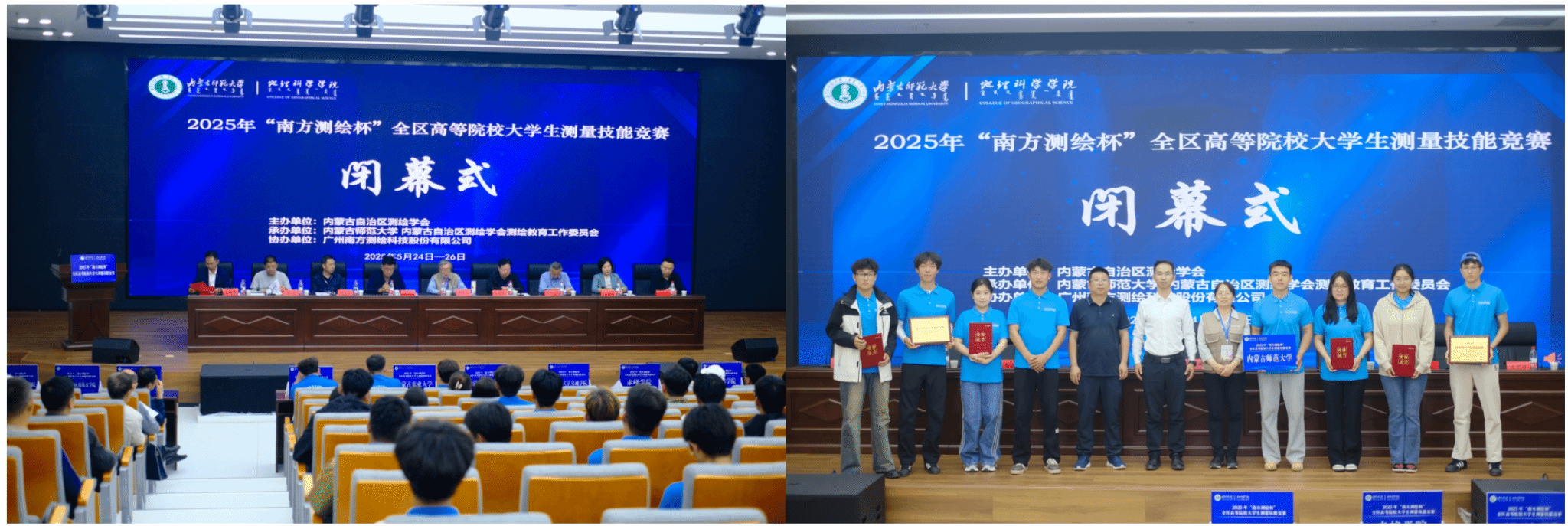 2025年5月23日至25日,由内蒙古自治区测绘学会主办,beat365中文官方网站、内蒙古自治区测绘学会教育工作委员会承办,广州南方测绘科技股份有限公司协办并冠名赞助的2025年“南方测绘杯”全区高等院校大学生测量技能竞赛在beat365中文官方网站盛乐校区成功举办。来自全区14所高等院校的22支线下参赛队(beat365官网2个参赛队)和多支线上虚拟仿真竞赛队同场竞技,展现测绘学子的专业风采。本次竞赛项目丰富,线下必选项目为四等水准测量和一级导线测量,线上选择项目包括虚拟仿真数字测图、无人机航测虚拟仿真、机载激光雷达虚拟仿真。