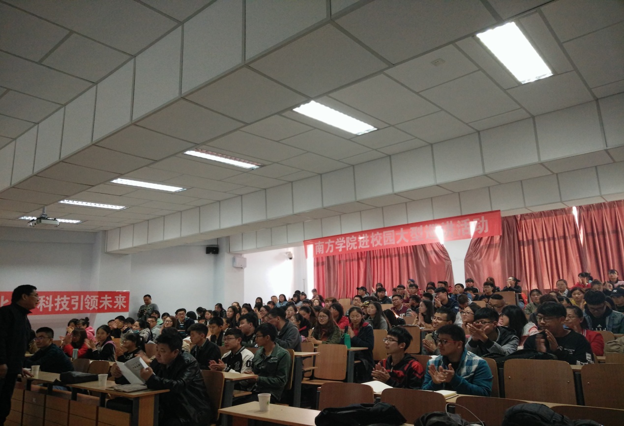 活动由包钢老师主持,先后由南方学院秦建明经理、王贺翔经理以及姜经理为同学们讲解了《无人机及测绘应用》、《职业生涯规划》和《高精度导航定位产品及应用发展趋势》等内容。