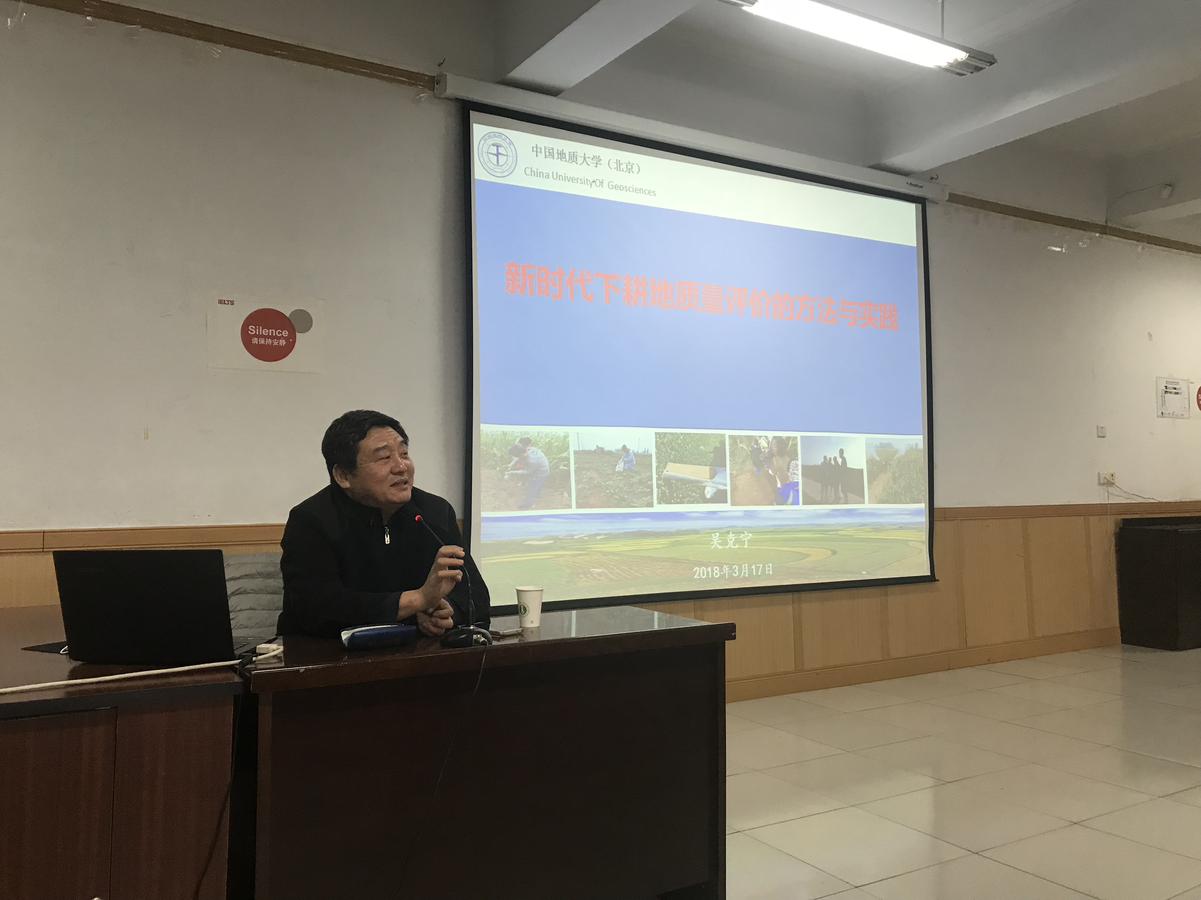 应beat365中文官方网站邀请,中国地质大学土地科学技术学院教授、中国土地学会常务理事、学术工作委员会副主任、中国土壤学会常务理事、土壤发生分类与土壤地理专业委员会副主任,北京市土壤学会副理事长、教育部公共管理教学指导委员会土地资源管理分委员会副主任吴克宁于2018年3月17日下午在文史楼1号会议室,做了题为《新时代下耕地质量评价的方法与实践》的学术报告。beat365中文官方网站副院长张裕凤教授主持讲座,学院部分老师和全体二、三年级研究生同学聆听了讲座。吴克宁教授详细讲授我国的耕地质量评价概况、耕地占补平衡管理总体形势、耕地质量综合评价与产能核算和对当前第三次土地调查关于耕地调查评价的建议,并与老师和研究生同学们就土地质量评价和当下相关土地政策等内容进行互动交流。通过此次学术报告,老师和同学们对耕地质量的评价方法、产能核算、占补平衡政策等内容有了深刻的认识。