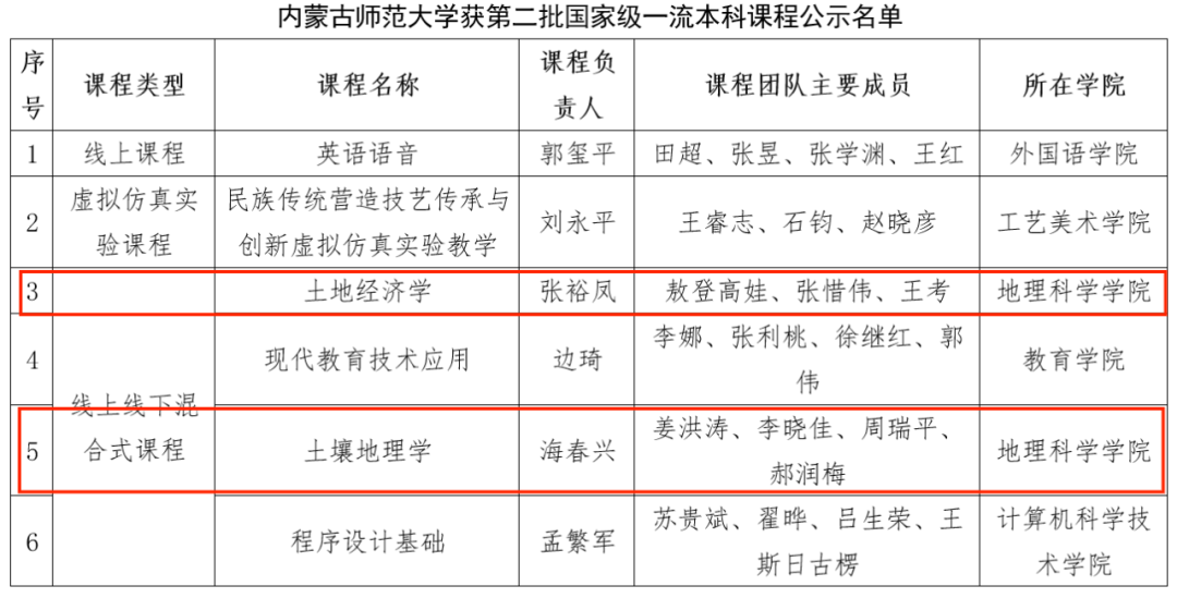 4月11日,教育部公示了第二批国家级一流本科课程认定结果,全区共有54门课程进入公示名单,beat365官网10门课程成功入选,其中包括beat365官网“土地经济学”、“土壤地理学”等2门课程,入选课程数量位居全校第一,充分彰显了学院在课程建设中持续投入与改进所取得的成效。