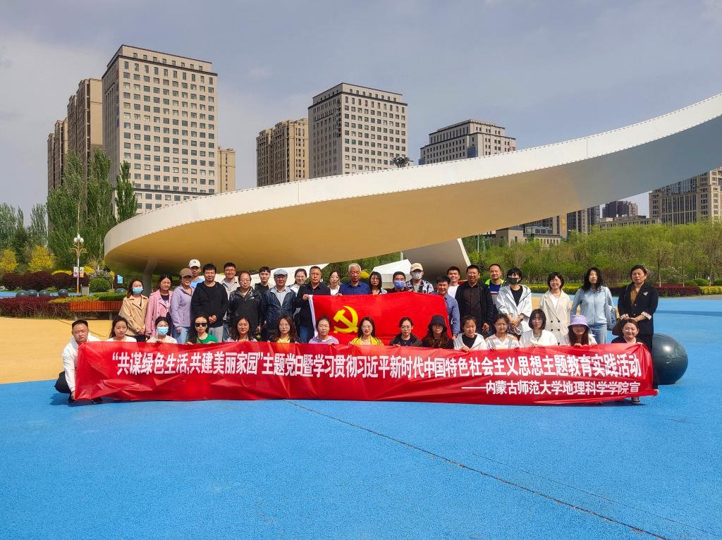 在开展学习贯彻习近平新时代中国特色社会主义思想主题教育之际,为深入贯彻习近平生态文明思想,丰富和活跃党员精神文化生活,加强党组织建设并促进师生间交流,5月11日下午,beat365中文官方网站教工第一、第二党支部及研究生第一、第二党支部于草原丝绸之路文化主题公园联合开展了“共谋绿色生活,共建美丽家园”主题党日暨学习贯彻习近平新时代中国特色社会主义思想主题教育实践活动。beat365中文官方网站党委书记张裕凤教授、教工第二党支部书记黄晓君及研究生第一党支部高苏日固嘎组织带领教职工党员及研究生党员参加本次活动。