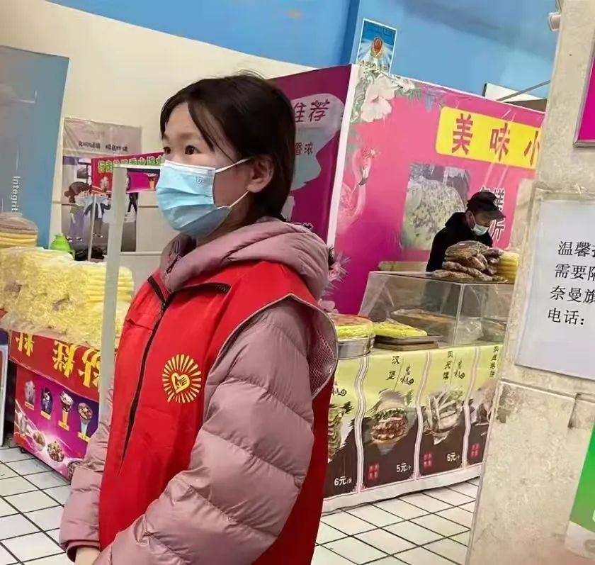 梁凯鑫 2021级地理信息科学班 在通辽市奈曼旗新天地地下商城大型商超协助疫情防控,测量体温,查看健康码,行程码等。