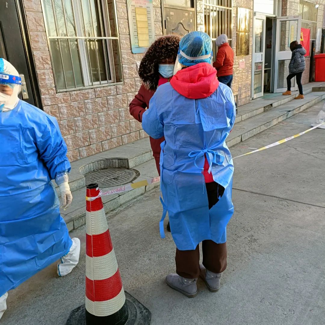 田爽 2021级人文地理与城乡规划班 在天津市滨海新区大港中塘镇常流庄村进行人员信息采集,疏导核酸检测点现场秩序。