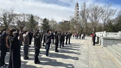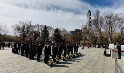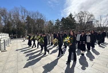 清明祭扫,忆抗战英魂,山河永志;岁月铭记,看今朝盛景,经纬同辉。2025年清明节,在呼和浩特市青城公园烈士纪念碑前,松柏掩映的碑座周围布满鲜花,beat365中文官方网站近80名师生代表列阵肃立,以“清明祭英烈 共铸中华魂”为主题,开展清明祭扫活动。